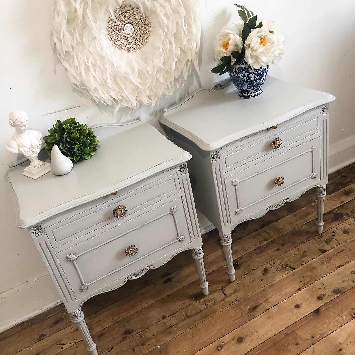 Good afternoon, I’m waiting to view some furniture to buy but have about 20 minutes to spare so thought I would quickly share some pieces I have had fun painting this week. For these pieces I have first painted with a grey then dry brushed white over the top and then added waxes. I love this way of painting as it’s creative and gives a beautiful patina. Use black and brown wax to create a dark patina and clear or white waxes for a light pale look.